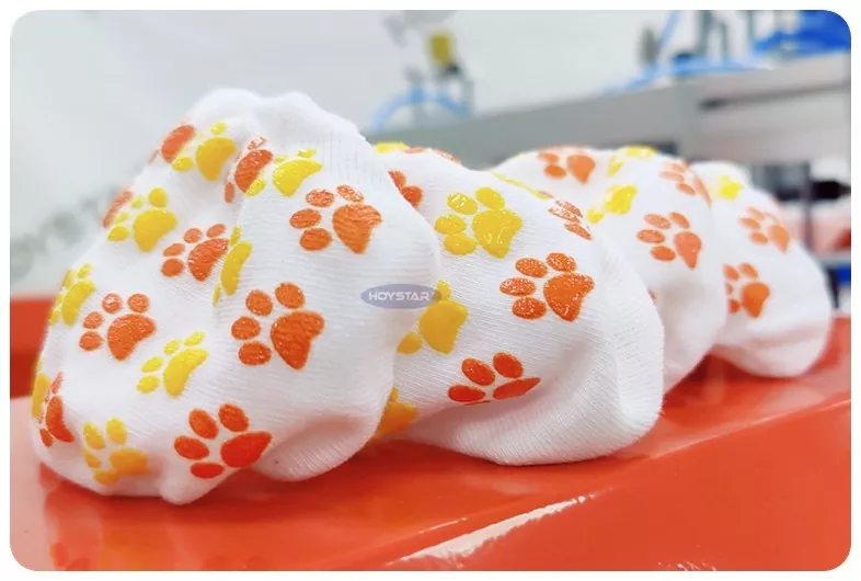 मोज़े की स्थिरता, विभिन्न आकार के मोज़ों को प्रिंट करने के लिए स्थिरता को बदल सकती है, मोज़ों के तलवे और एड़ी दोनों पर प्रिंट कर सकती है।