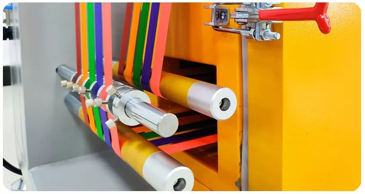 रिबन पर अलग-अलग पैटर्न या लोगो प्रिंट करने के लिए स्क्रीन फ्रेम बदल सकते हैं। मुद्रण करते समय स्क्रीन फ्रेम स्नैप-ऑफ मोड होता है, जिसे विभिन्न स्याही के साथ मुद्रण पर लागू किया जा सकता है।